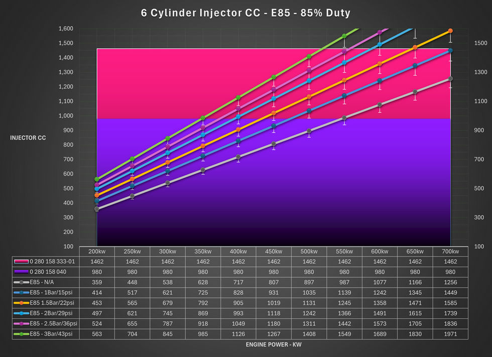 Using the guides below you can quickly estimate your required injector size based on the following